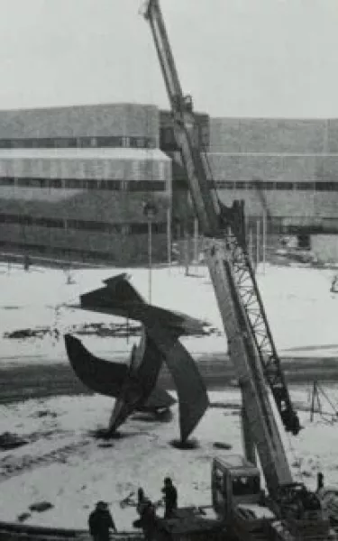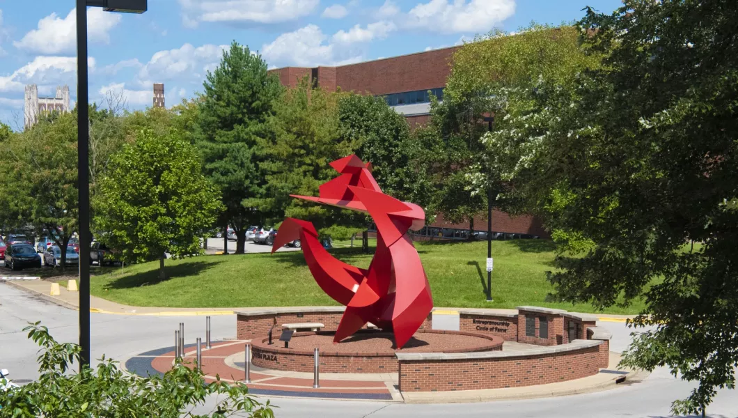 One of UofL's most recognizable fixtures, the sculpture Big Red is located outside the College of Business. It was created by Louisville artist Tom Lear in 1989 and was installed in December 1989.