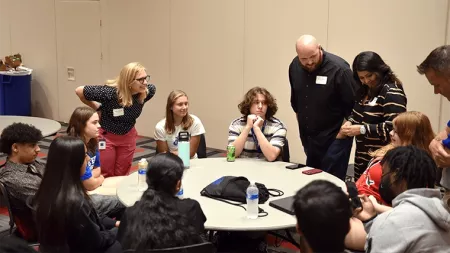 Cardinal Bridge Academy students sitting around a table with their mentors.