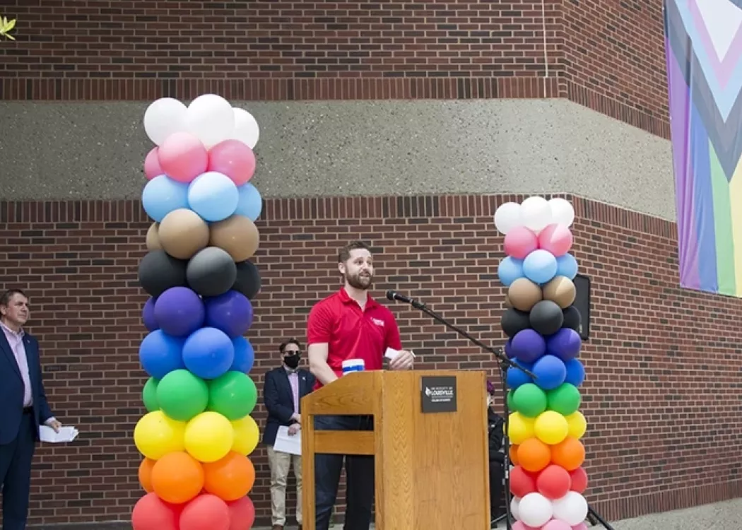A commitment to building an inclusive environment and educating others about being an ally was front and center at last month’s Pride banner raising.