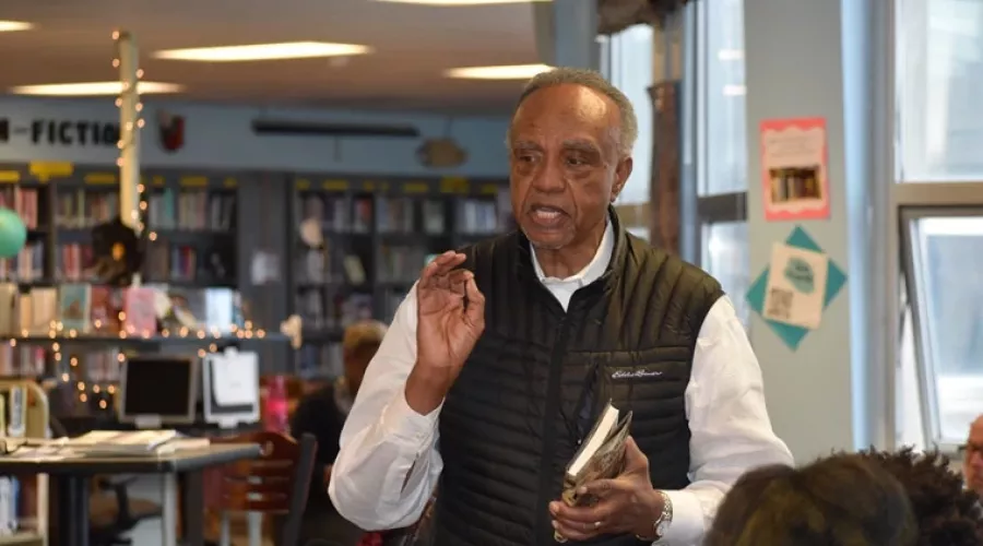 The interactive session brought Taulbert together with seniors in the school’s Career Pathways program, intimately sharing his life story and experiences. He captivated the group as he spoke about growing up in the Deep South during the time of legal segregation—how he took the lessons learned from working on his Uncle Cleve’s ice truck to become a successful entrepreneur, business exec, and author. Taulbert stressed the importance of having the right mindset, goals, imagination to succeed in an uncertain environment.