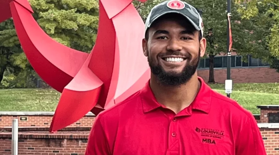 OMBA Program Director Zac Goldman, PhD, echoes Herron’s point, sharing that the intention and commitment UofL and the College of Business have put toward building engaging online graduate learning opportunities can provide students like Herron the chance to advance their education while maintaining busy personal and professional lives. “We are committed to using technology and online learning to maximize flexibility for all of our students. Flexibility is important for everyone, but programs like our Online MBA have intentionally prioritized it without compromising the rigor and value of our programs and the quality of our alumni. As a graduate student, football player, and active member of the community, our OMBA is a perfect fit for students like Stephen. Like so many MBA students, Stephen’s schedule varies from week to week, but through the design and delivery of our Online MBA program, he and others can still successfully pursue their degrees without sacrificing other important aspects of their lives. We are incredibly proud of Stephen, our student-athletes, and all of our working and professional students who are able to balance the busyness of their lives with their ongoing commitment to learning and growth.”