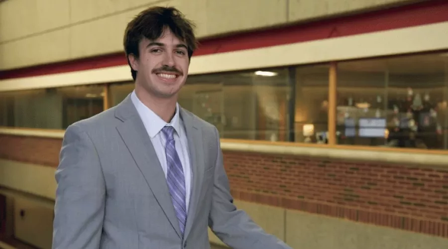 “At first, I felt a little undeserving, but I was very grateful and honored to be recognized,” shared undergraduate student Sam Fadel when reflecting on being named as the Fall 2023 College of Business Outstanding Graduate and Outstanding Graduate in Economics and Finance, along with his recognition as Banner Bearer for the College as part of the University of Louisville’s upcoming commencement ceremonies. “I was proud of myself…oftentimes I think we get so caught up in what we’re doing [and] what we’re striving for we don’t take time to appreciate what we’ve accomplished and the things we’ve done,” he reflected.