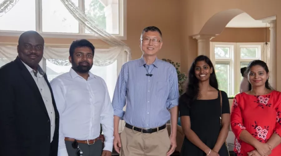 Dr. Guan helped coordinate a recent welcome lunch for international students, driving several students from campus up to the home of lunch host College of Business Board of Advisors member Sundeep Dronawat (‘96/’01) in Prospect, Kentucky. At the luncheon, Dr. Guan could be found among the students, introducing them to College of Business faculty and UofL President Neeli Bendapudi, as well as engaging them in conversation about everything from graduate internships to getting around Louisville.