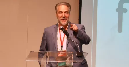 Friday’s events consisted of a first-round track competition with teams presenting in groups of three. Judges then selected one team from each group to participate in the final round. All teams participated in the fast-pitch competition. The day also featured keynote speaker Scott Koloms, CEO of Facilities Management Services (FMS), Founder of Canopy, and UofL graduate, who discussed his commitment to fostering employee well-being and leaving a positive community impact through exhibiting leadership that prioritizes mindfulness and meditation methods. Koloms also took a few moments to answer questions from event attendees.