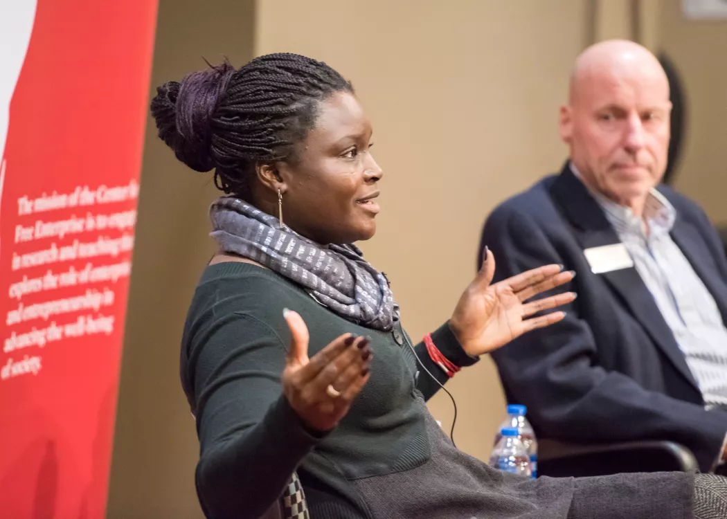 The Center for Free Enterprise focuses on exploring the role of enterprise and entrepreneurship in advancing societal well-being, offering students opportunities to cultivate innovation and entrepreneurial thinking across majors and careers.